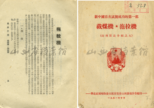 1951年10月编印的《新中国首次试制成功的第一部截煤机、拖拉机》(山西省档案馆 藏)
