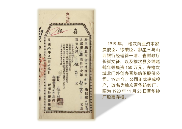1920年11月25日晋华纱厂股票存根