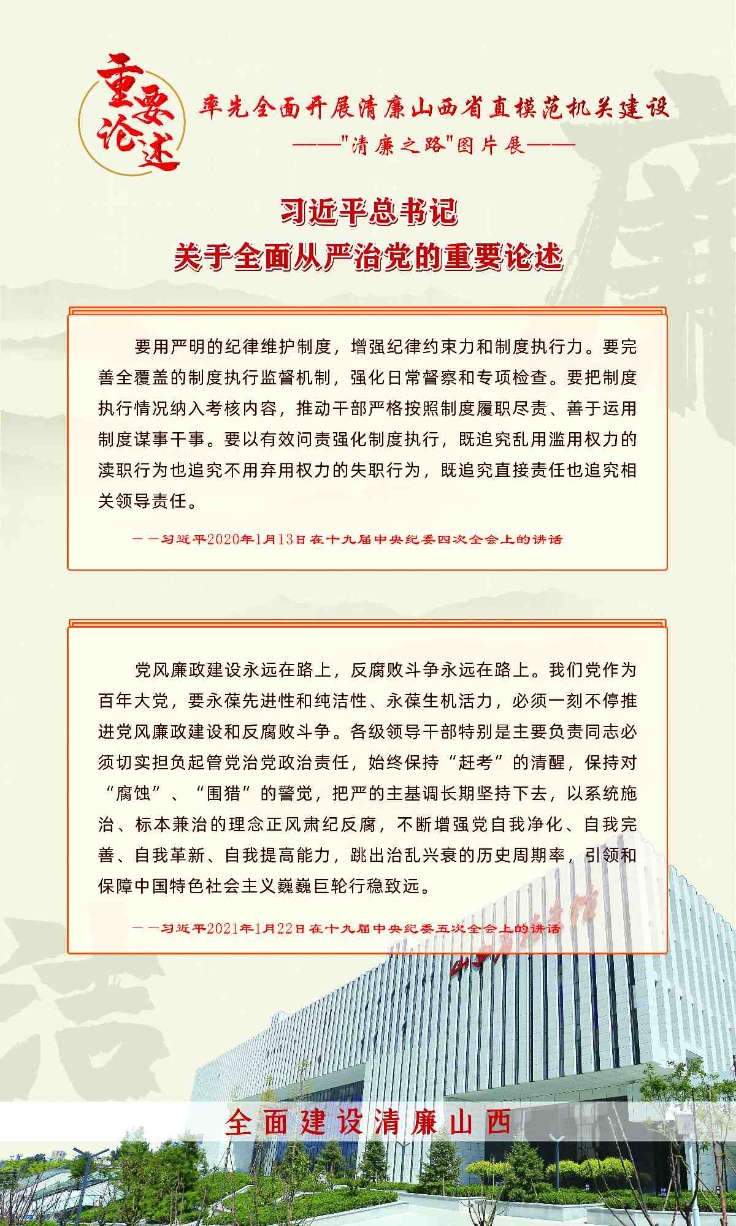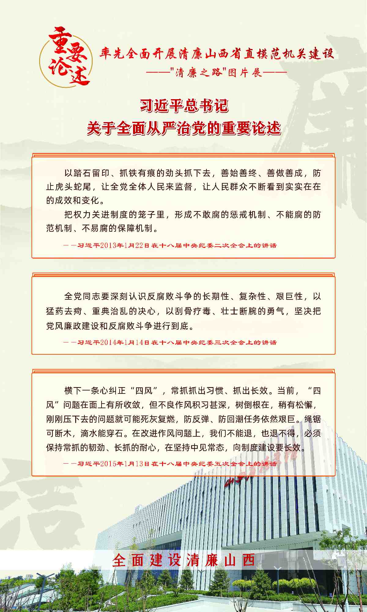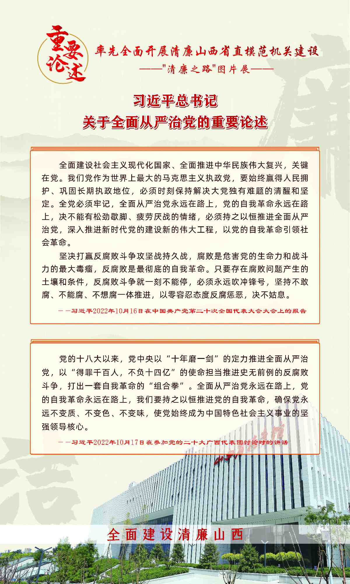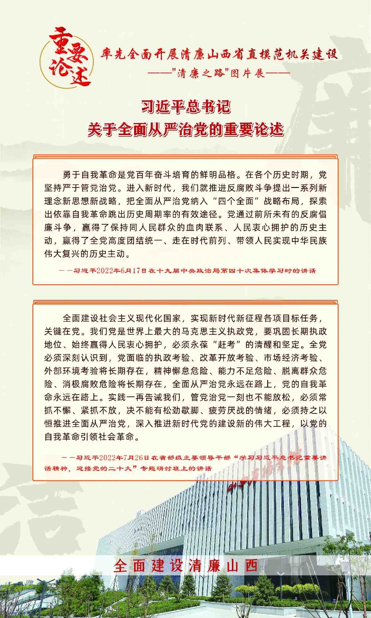 治国必先治党,治党务必从严。党的十八大以来,习总书记亲自谋划、亲自部署、亲自推进,强调党要管党、全面从严治党,提出了一系列新的理念、思路、举措。